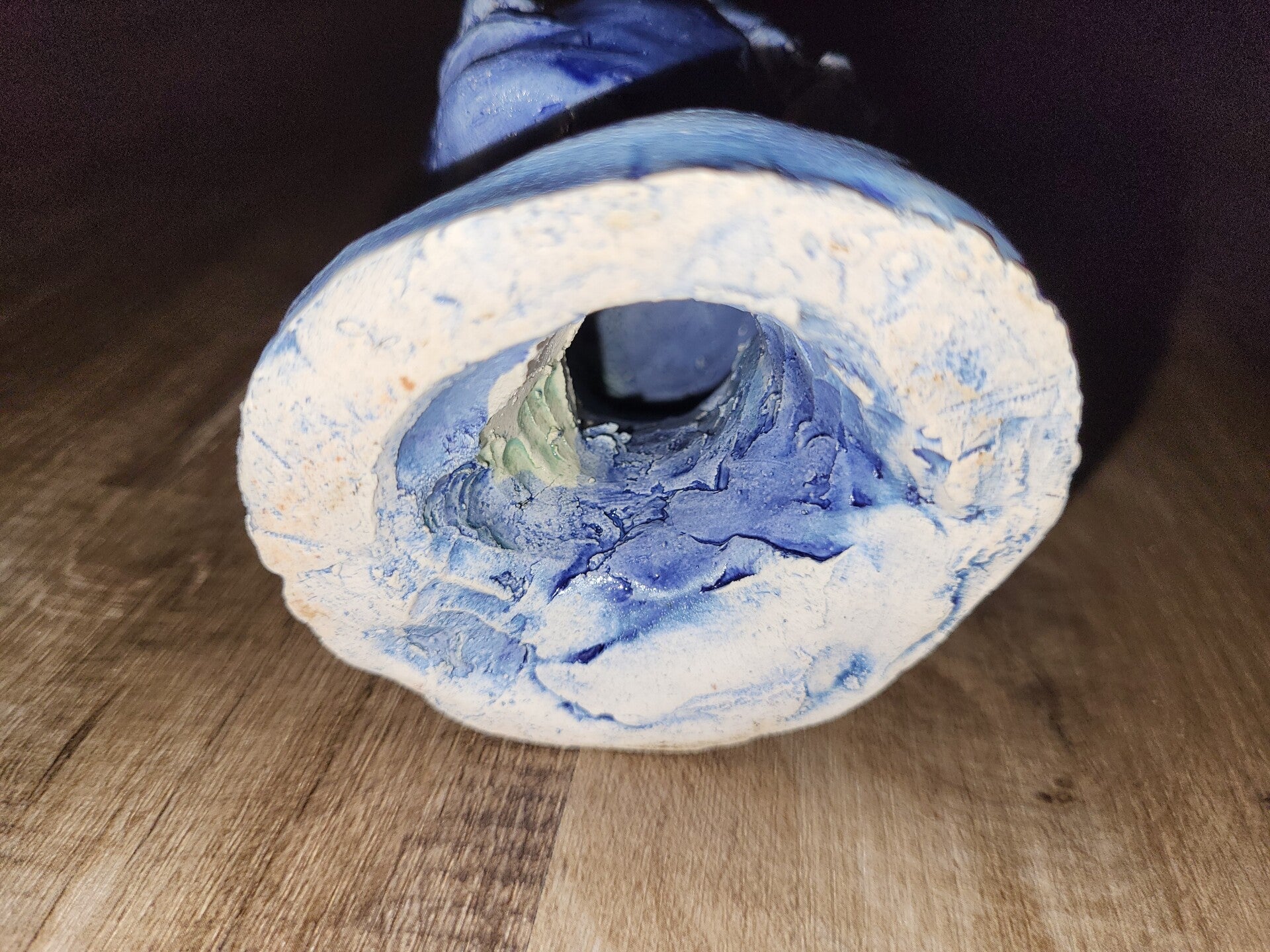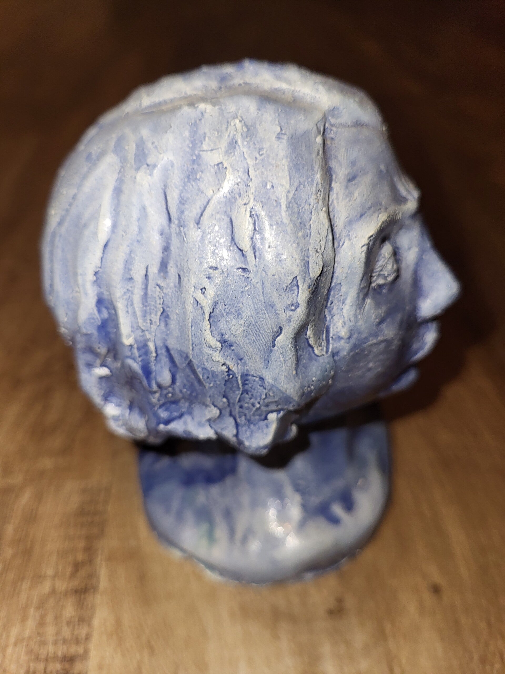Frauenbüste Figur Kopf aus Keramik Kunstwerk Plastik hellblau