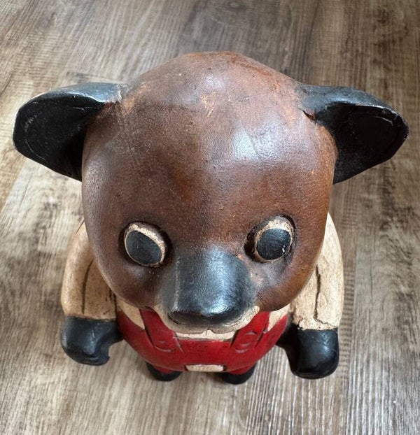 Bär Figur aus Massivholz 60er Jahre Vintage handgeschnitzt handbemalt alt